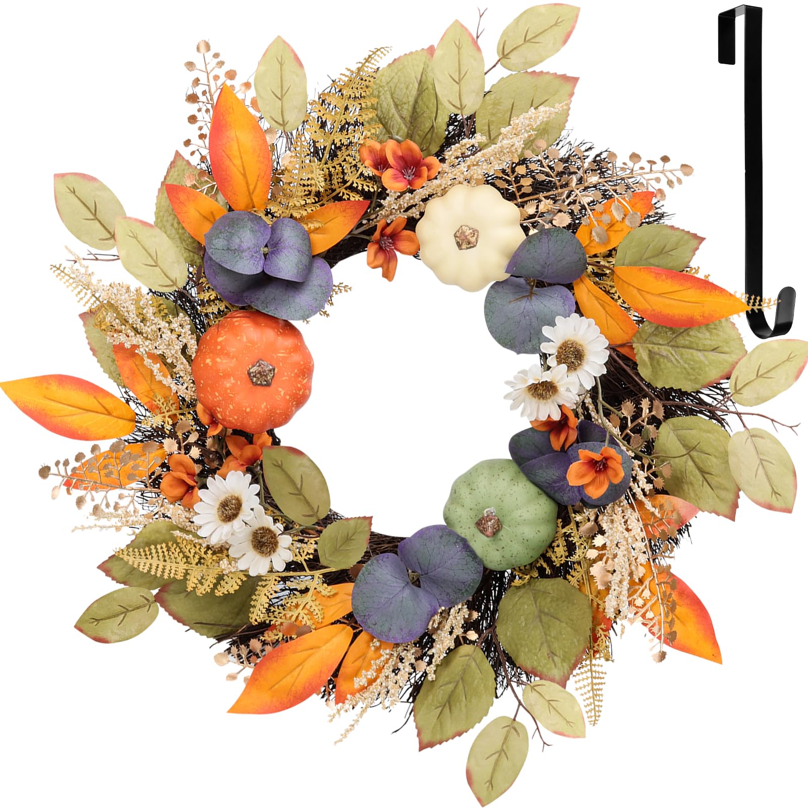 The size is nice for a front door, and it comes with a hanger. That’s handy. But those good points don’t make up for how easily it falls apart. We can’t say we’d buy this again or tell our friends about it. There are better fall wreaths out there that won’t break the first time you touch them.
