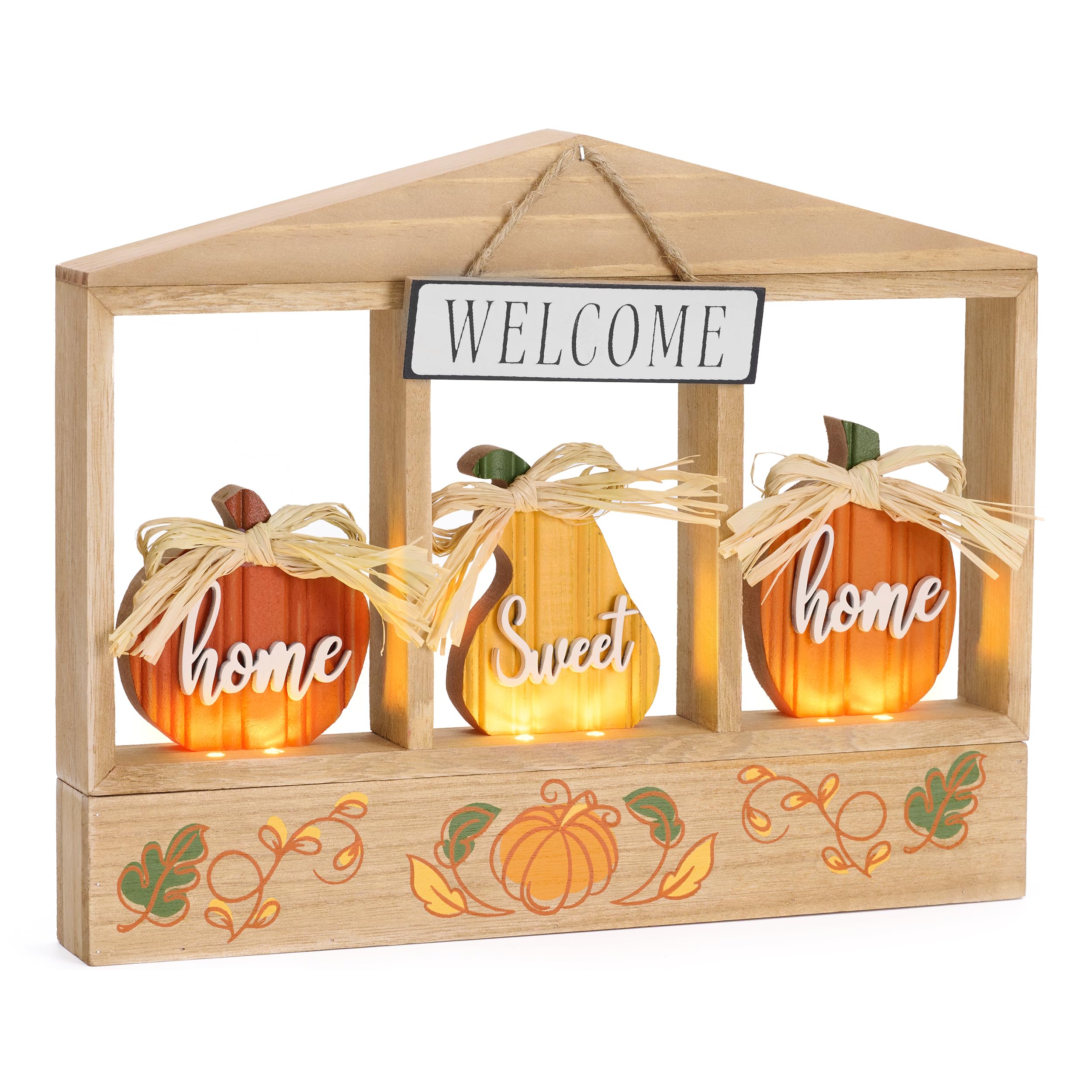 We love this adorable pumpkin decoration! It’s perfect for adding a touch of fall to our home. The wooden sign is thick and well-made, so we know it’ll last for many seasons to come.