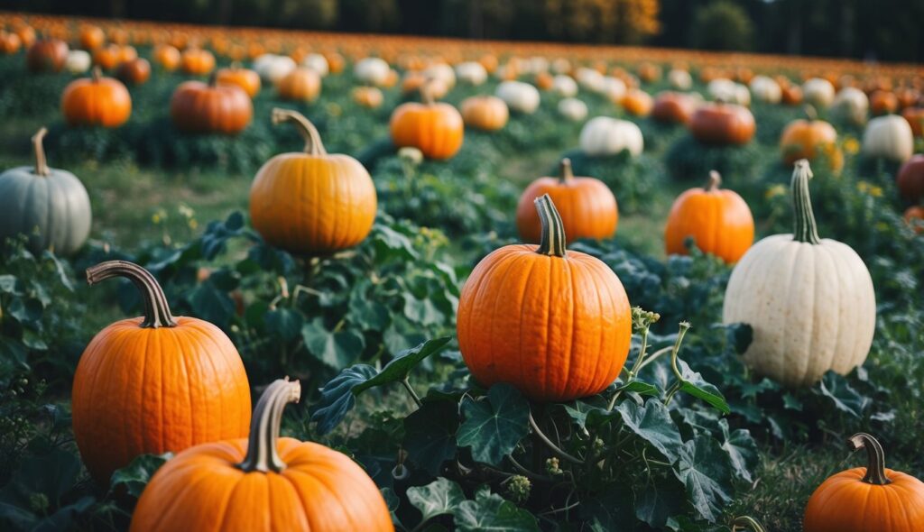Different types of pumpkins have varying space needs. Large varieties need 50-100 square feet per hill. Smaller ones can grow in 3-4 foot wide rows.